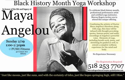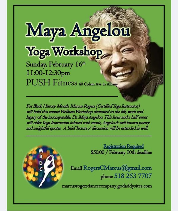 On February 18th, 2024 MRDC celebrated black history month with a unique Yoga Workshop offered by Marcus Rogers. This class honored the life and legacy of Doctor Maya Angelou. Angelou, who died in 2014, was an activist, teacher, poet, humanitarian, singer, dancer, speaker and inspiration to so many.